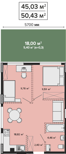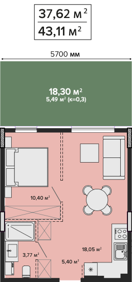 2К квартира на 1 поверсі, секція 1.