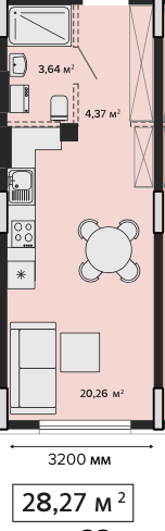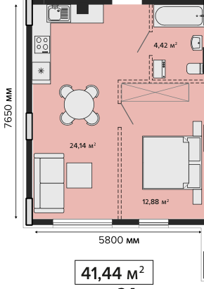 1К квартира на 4 поверсі, секція 2.